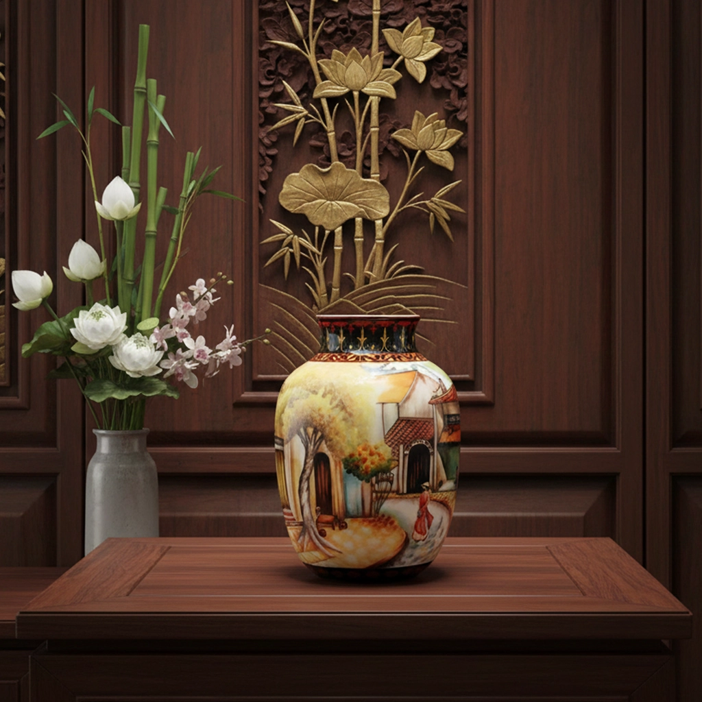 Bình hoa 26 cm – Duyên Quê là sản phẩm gốm sứ trang trí cao cấp từ Minh Long I, mang phong cách nghệ thuật truyền thống Việt Nam hòa quyện cùng nét tinh tế hiện đại. Với thiết kế uyển chuyển, màu men trang nhã và họa tiết duyên dáng, bình hoa Duyên Quê tạo điểm nhấn thẩm mỹ cho mọi không gian sống. Chiếc bình có chiều cao lý tưởng 26 cm, phù hợp để cắm hoa tươi hoặc trưng bày độc lập trên bàn, kệ, tủ trang trí, mang đến cảm giác ấm áp và gần gũi. Bình hoa không chỉ là vật dụng trang trí mà còn thể hiện gu thẩm mỹ tinh tế, là món quà ý nghĩa dành tặng người thân và bạn bè trong các dịp đặc biệt.