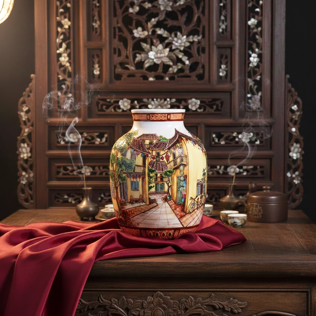 Với chiều cao 26 cm, bình hoa Phù hợp để cắm hoa tươi, hoa khô hoặc trưng bày độc lập trên bàn phòng khách, bàn ăn, kệ trang trí hay phòng làm việc. Họa tiết phong cảnh tinh xảo và gam màu hài hòa tạo điểm nhấn thẩm mỹ, giúp không gian nội thất trở nên ấm cúng và sang trọng hơn. Bình hoa 26 cm – Phong Cảnh không chỉ là vật trang trí tinh tế mà còn là món quà ý nghĩa dành tặng người thân, bạn bè trong các dịp lễ, tân gia hay kỷ niệm.