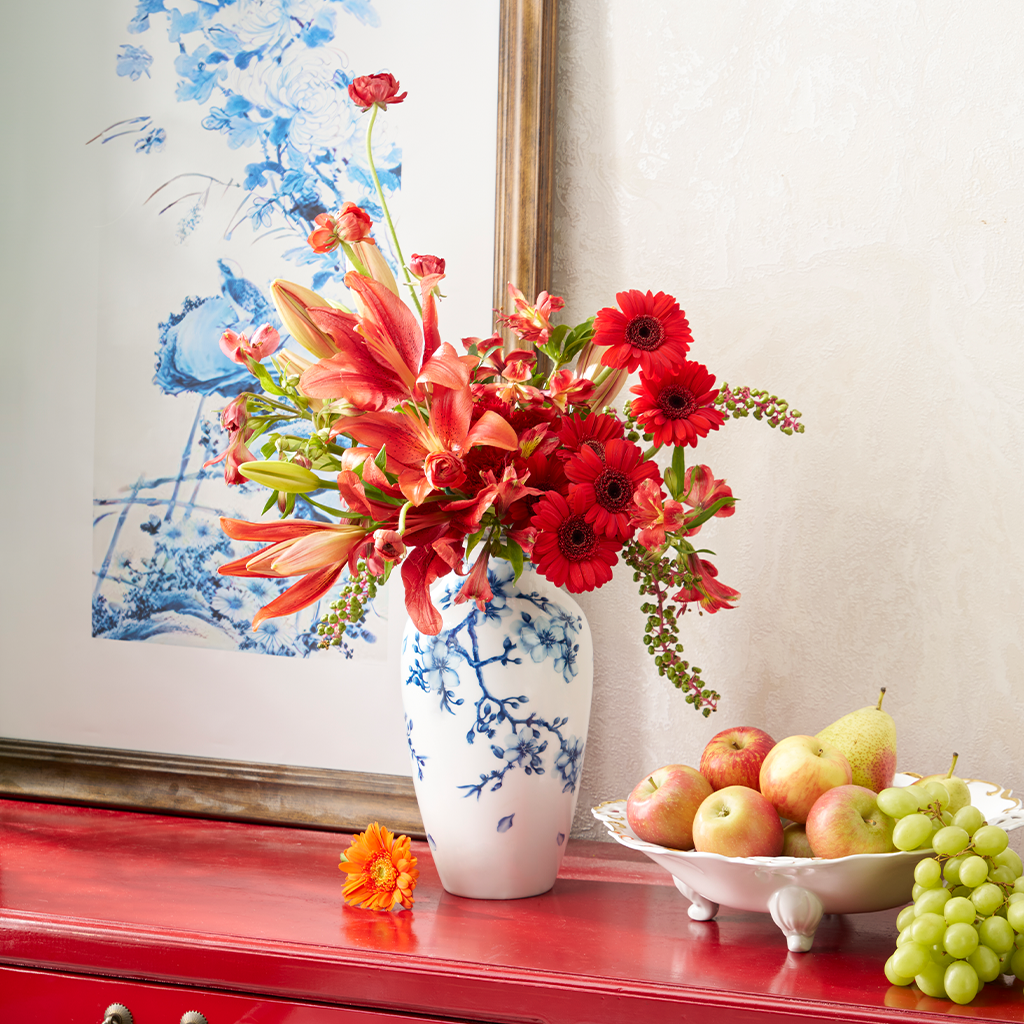 Sản phẩm được chế tác từ sứ cao cấp Minh Long, nung ở nhiệt độ cao, cho bề mặt men bóng mịn, bền màu theo thời gian. Với kích thước cân đối 27 × 14.5 cm, bình phù hợp trưng bày hoa tươi, hoa khô hoặc dùng như một vật phẩm trang trí nội thất, quà tặng ý nghĩa trong các dịp lễ, Tết, tân gia.