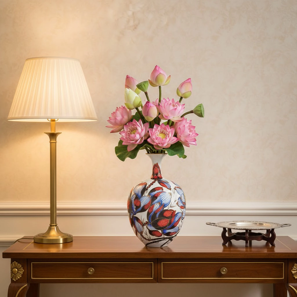 Sản phẩm được chế tác từ chất liệu gốm sứ cao cấp với quy trình sản xuất chuẩn quốc tế, giúp giữ được màu sắc bền đẹp theo thời gian và dễ dàng vệ sinh. Bình hoa 30 cm – Hoa Sen không chỉ là vật dụng trang trí nội thất tinh tế mà còn là món quà ý nghĩa dành tặng người thân, bạn bè vào các dịp lễ, tân gia hay kỷ niệm đặc biệt.