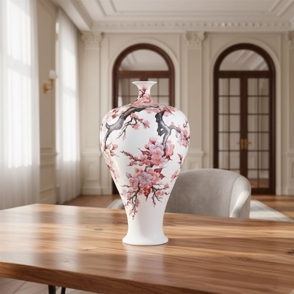Bình hoa 41 cm – Hoa Đào là tác phẩm gốm sứ nghệ thuật cao cấp đến từ thương hiệu danh tiếng Minh Long. Sản phẩm được các nghệ nhân vẽ tay tỉ mỉ, với họa tiết hoa đào tinh tế đậm chất mùa xuân Việt Nam, thể hiện sự thanh lịch, sang trọng và đầy sức sống. Bình hoa không chỉ là vật trang trí đẹp mắt mà còn là món quà giá trị phù hợp cho nhiều dịp đặc biệt như tân gia, lễ tết hay quà biếu đối tác.