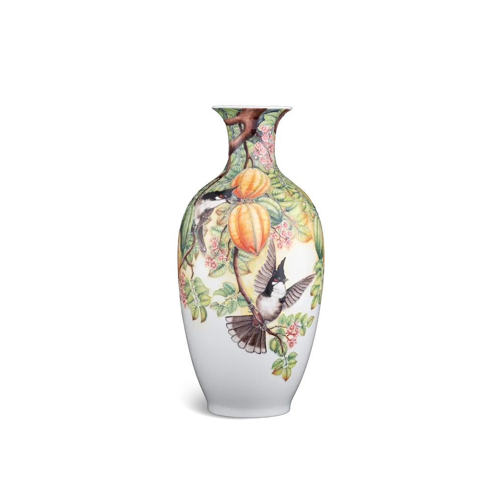 Bình hoa 42 cm – Chim và Khế là một tác phẩm nghệ thuật gốm sứ cao cấp được chế tác và vẽ tay hoàn toàn bởi các nghệ nhân lành nghề của Minh Long. Sản phẩm sở hữu họa tiết thiên nhiên độc đáo mô phỏng hình ảnh chim và quả khế, thể hiện sự hài hòa giữa thiên nhiên và nghệ thuật truyền thống, phù hợp làm điểm nhấn trang trí tinh tế trong không gian sống hay không gian làm việc.