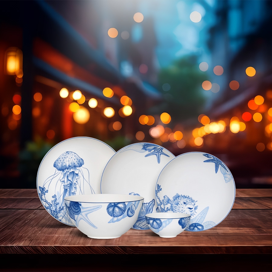 Lấy cảm hứng từ vẻ đẹp huyền bí của biển cả, Bộ đồ ăn 17 sản phẩm – Timeless IFP – Đại Dương Sương Mờ mang đến cảm giác mát dịu, thanh khiết và gần gũi thiên nhiên trong từng món ăn.