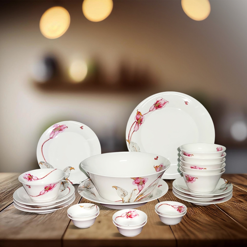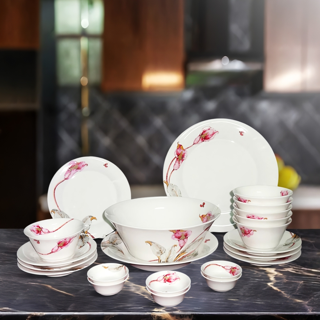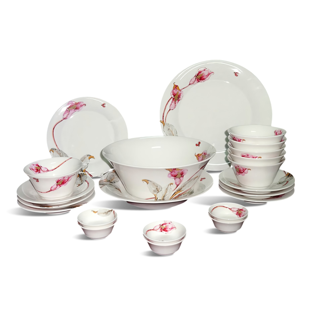 Bộ đồ ăn 22 sản phẩm Tulip ngà Loa Kèn Hồng không chỉ là vật dụng nhà bếp mà còn là tác phẩm nghệ thuật nhỏ trên bàn ăn, góp phần nâng tầm không gian sống của bạn.