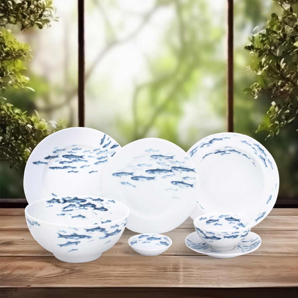 Bộ đồ ăn 23 sản phẩm - Jasmine - Cá Cơm Sương Mờ (23JAS519) là sự kết hợp hài hòa giữa chất liệu sứ cao cấp và họa tiết nghệ thuật đậm chất Việt. Lấy cảm hứng từ hình ảnh cá cơm trong làn sương mờ ảo, bộ sản phẩm mang đến cảm giác nhẹ nhàng, tinh tế và gần gũi với thiên nhiên.