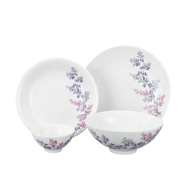 Bộ đồ ăn 9 sản phẩm – Daisy – Cỏ Tím gây ấn tượng với họa tiết hoa cỏ tím mộng mơ được in sắc nét trên nền sứ trắng ngà, mang lại cảm giác thư thái, dịu dàng như một bức tranh thiên nhiên trên bàn ăn. Bộ sản phẩm là lựa chọn hoàn hảo cho những ai yêu thích sự tinh tế, gần gũi nhưng vẫn sang trọng trong không gian bếp.