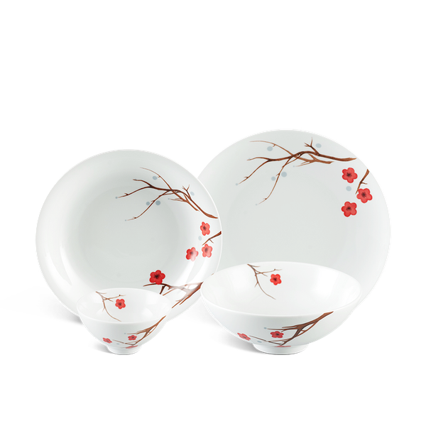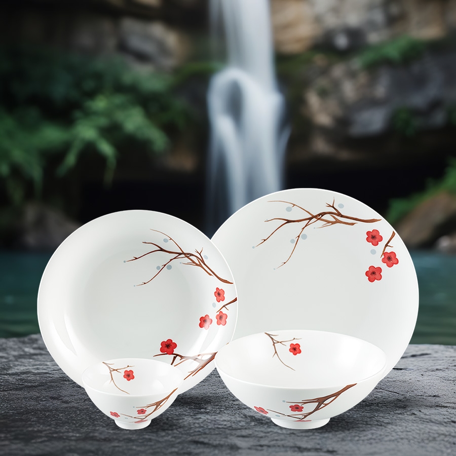Bộ đồ ăn 9 sản phẩm – Daisy – Hồng Mai được thiết kế với họa tiết hoa mai hồng nở rộ – biểu tượng của mùa xuân, mang đến cảm giác tươi mới, bình an và hạnh phúc cho không gian sống. Họa tiết in sắc nét trên nền men sứ trắng ngà cao cấp, thể hiện gu thẩm mỹ nhẹ nhàng nhưng trang nhã, rất phù hợp với gia đình hiện đại hoặc làm quà tặng ý nghĩa.