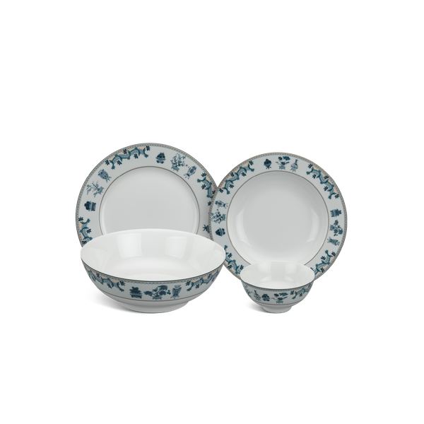Bộ sản phẩm Tứ quý quy tụ 4 loài cây đại diện cho 4 mùa: Mai (mùa xuân), Trúc (mùa hạ), Cúc (mùa Thu), Tùng (mùa Đông), mang đến cho chủ sở hữu sự phú quý, sung túc và may mắn. Trên mỗi sản phẩm, 4 loài cây được khắc họa xen kẽ một cách khéo léo tạo nên một bộ tứ vừa vững chãi vừa mảnh mai. Đồng thời, sắc xanh hòa cùng men sứ trắng ngà tạo nên bức tranh thiên nhiên nhiều sắc màu với bao lời chúc tốt lành.