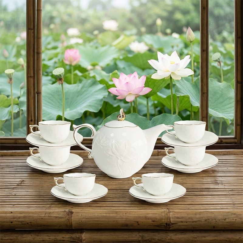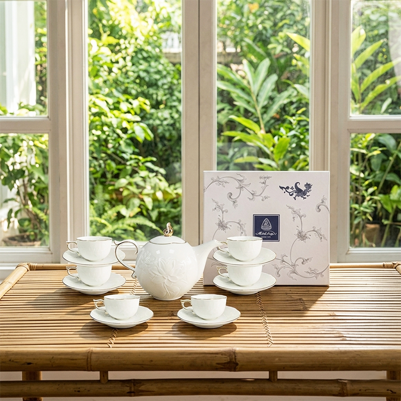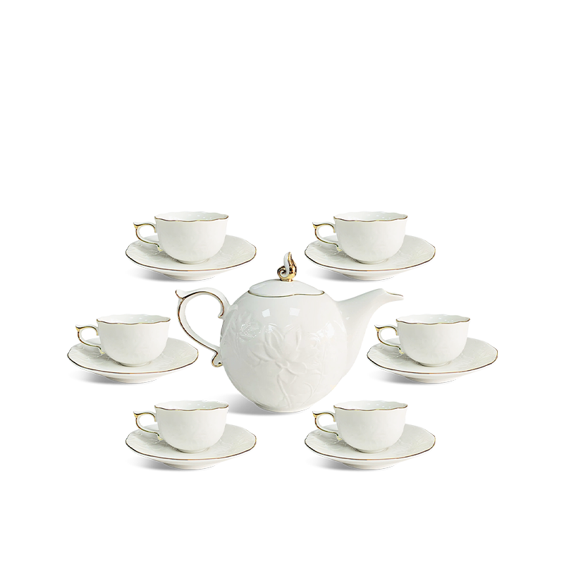 Bộ trà 0.7L Sen IFP Chỉ Vàng là sản phẩm thuộc dòng gốm sứ nghệ thuật của Minh Long I, nổi bật với hoa văn sen thanh khiết kết hợp đường viền chỉ vàng sang trọng. Hình tượng hoa sen biểu trưng cho sự thuần khiết, trí tuệ và tinh thần Việt, thích hợp làm quà biếu, trang trí bàn trà hay sử dụng trong không gian trang nghiêm, thanh tịnh.