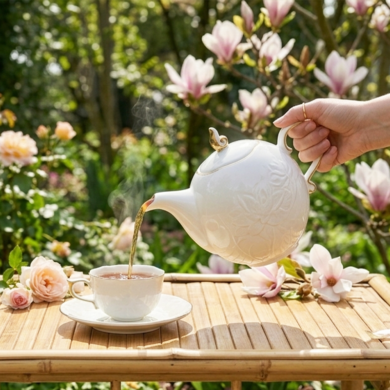 Thiết kế truyền thống: dáng tròn cân đối, tay cầm vừa vặn, vòi rót không nhỏ giọt, phù hợp với không gian trà Việt cổ điển.