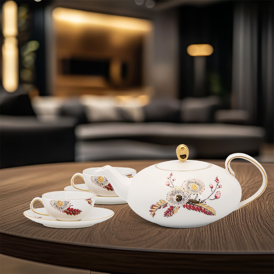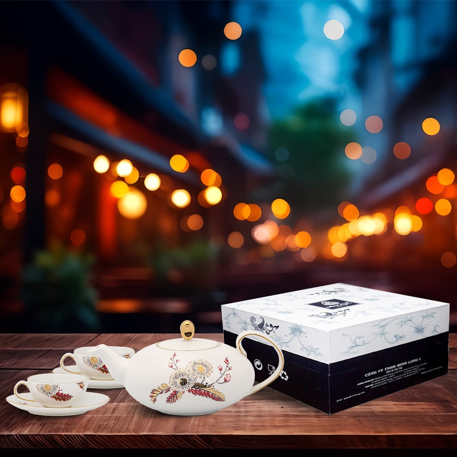 Bộ trà elip 0.47L Anna – Thiên Kim mang vẻ đẹp tinh tế, hiện đại với dáng elip thanh thoát và họa tiết hoa văn Thiên Kim trang nhã, sang trọng. Sản phẩm thuộc dòng sứ cao cấp của Minh Long, thích hợp dùng làm quà tặng cao cấp, trưng bày hoặc sử dụng trong không gian tiếp khách thanh lịch.