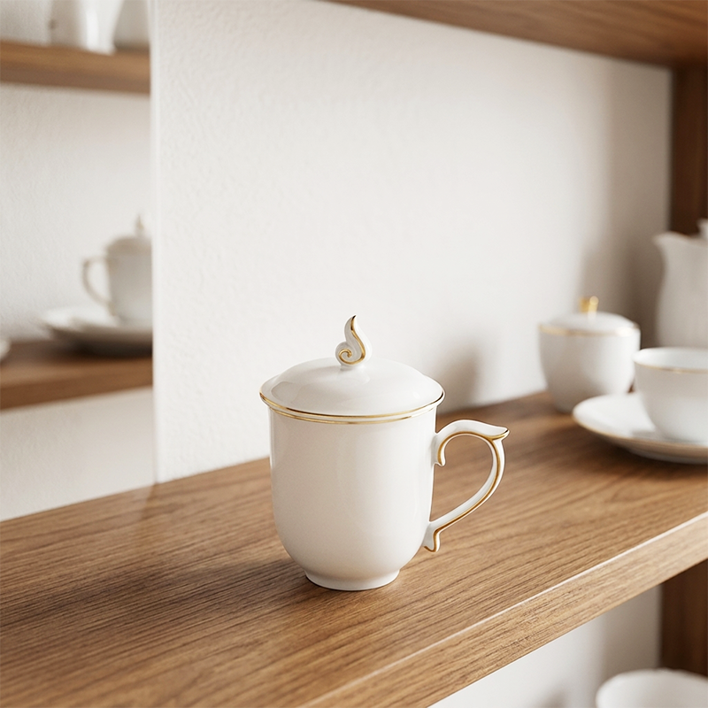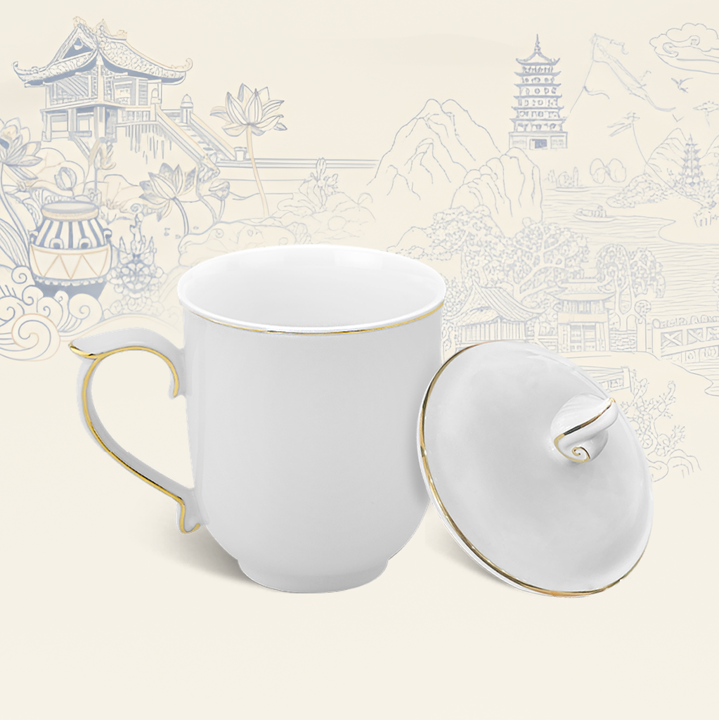 Ca trà sứ Minh Long 0.3L - Mẫu đơn Chỉ Vàng