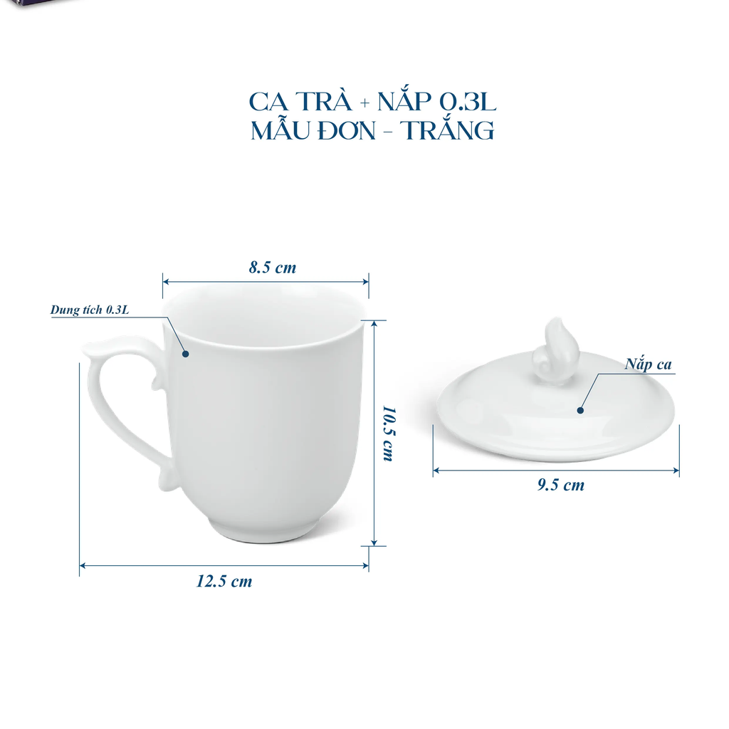 Ca trà sứ Minh Long 0.3L - Mẫu đơn trắng