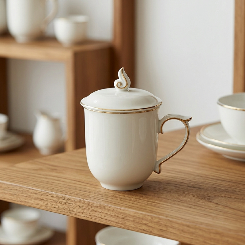 ✔ Họa tiết viền vàng sang trọng: Đường chỉ vàng chạy dọc viền miệng ca, nắp và tay cầm tạo nên điểm nhấn đẳng cấp.