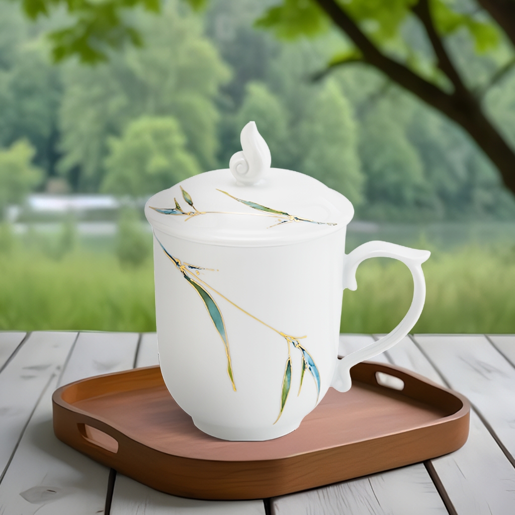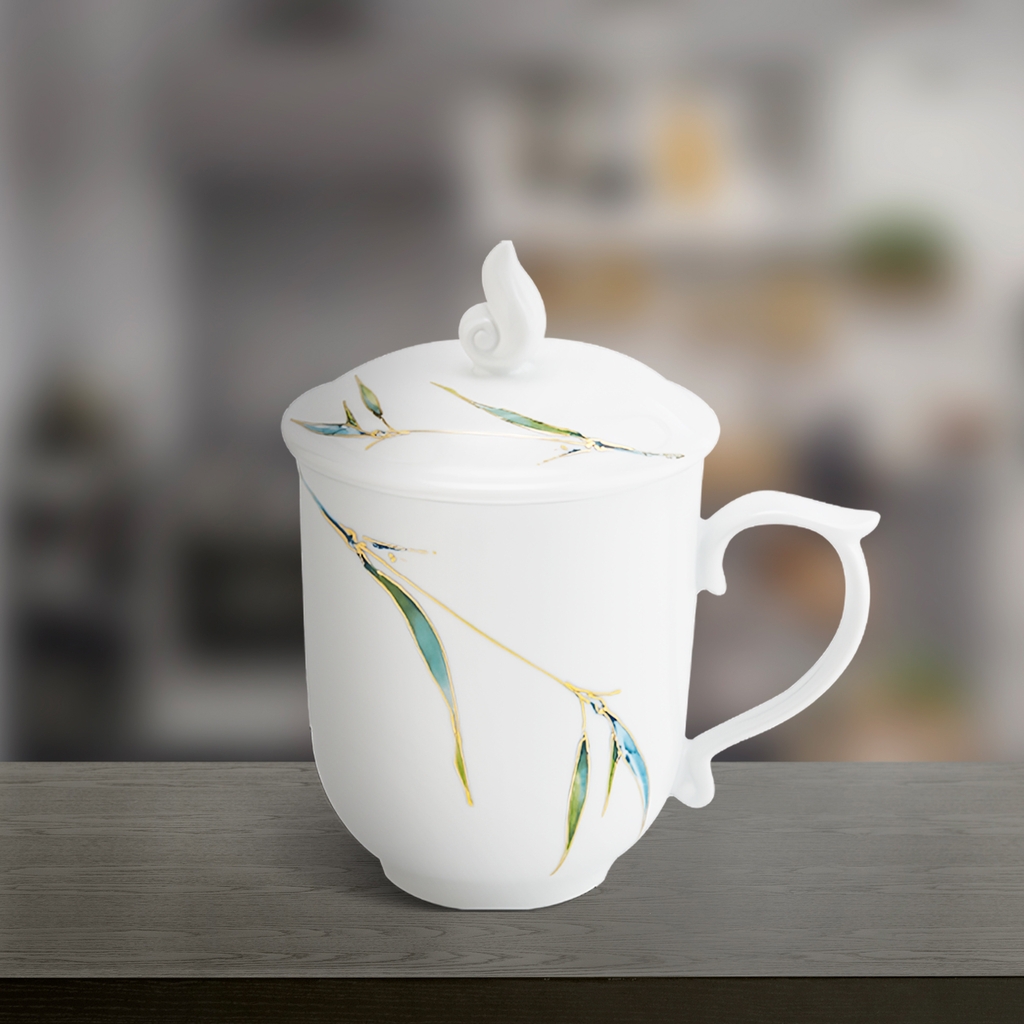 Họa tiết Trúc xanh tinh tế, mang ý nghĩa sung túc, may mắn và thanh cao, giúp tôn lên vẻ đẹp sang trọng cho không gian thưởng trà. Với thiết kế nắp đậy đi kèm, ca trà giúp giữ nhiệt tốt hơn, đồng thời ngăn bụi bẩn hiệu quả.