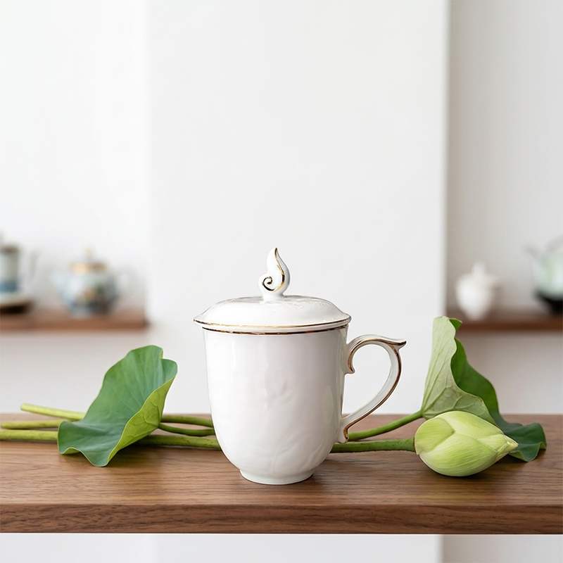 ✔ Họa tiết Hoàng Liên sang trọng: Hoa sen Hoàng Liên – biểu tượng của sự thanh cao, kết hợp đường viền vàng tạo điểm nhấn tinh tế.