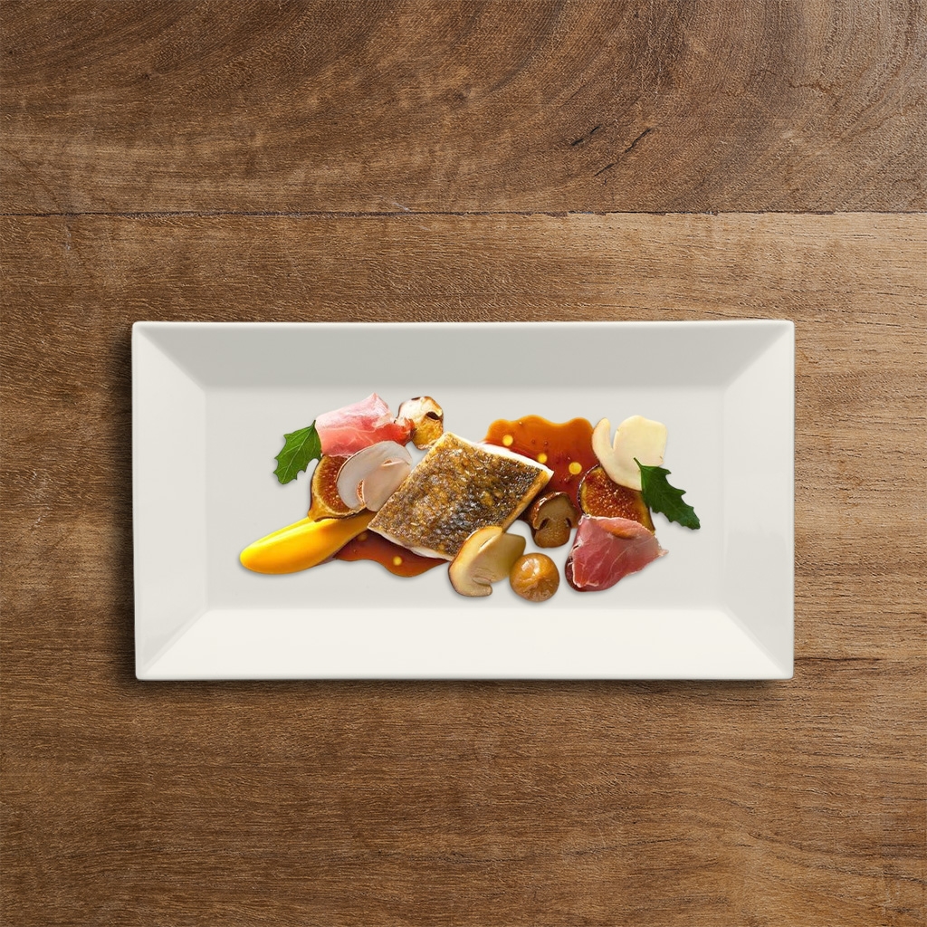 Kiểu dáng chữ nhật cách điệu giúp dễ dàng bày biện các món cuốn, món nướng, sushi, trái cây, bánh ngọt… vừa đẹp mắt vừa gọn gàng. Đường nét mềm mại, bo cạnh uyển chuyển kết hợp cùng sắc trắng ngà và họa tiết Lys nhẹ nhàng tôn lên vẻ thanh lịch, trang nhã cho từng món ăn.