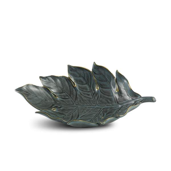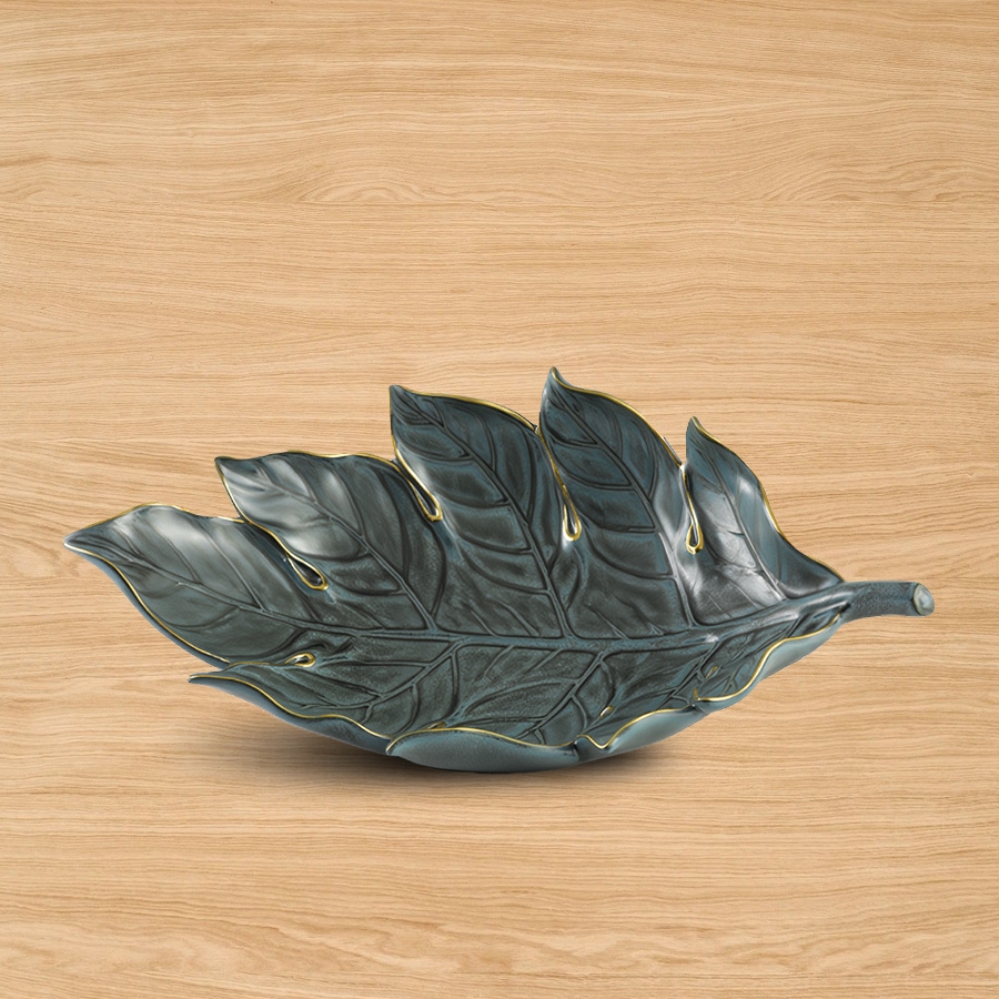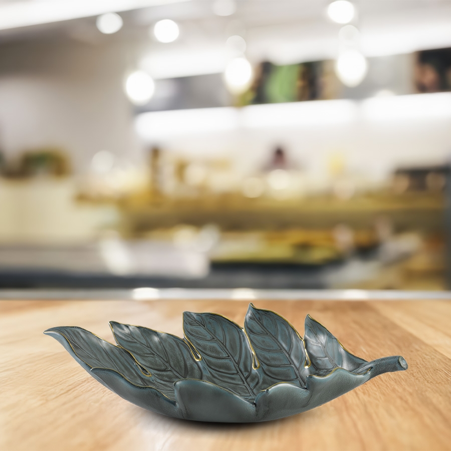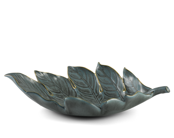 Dĩa trái cây Lá Sake 42.5cm viền vàng – Xanh ngọc bích Matte A001_00460741V | Minh Long là sản phẩm gốm sứ cao cấp thuộc bộ sưu tập trang trí nghệ thuật, nổi bật với thiết kế lấy cảm hứng từ hình dáng lá sake độc đáo. Mặt men xanh ngọc bích mờ sang trọng phối viền vàng tinh tế tạo nên vẻ đẹp thanh lịch, hiện đại và đậm chất thẩm mỹ.
