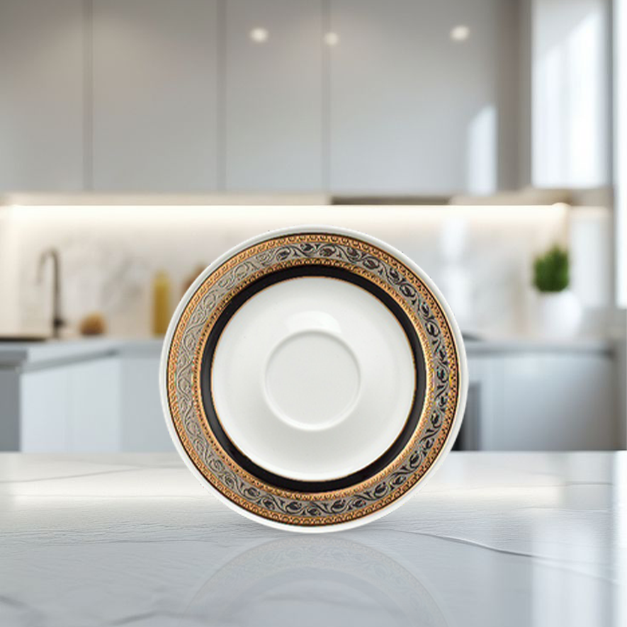 Dĩa lót tách – Sago – Hoa Hồng Đen là phụ kiện sứ tinh tế, được thiết kế đồng bộ với bộ tách Sago sang trọng của Minh Long. Sản phẩm nổi bật với họa tiết “Hoa Hồng Đen” độc đáo, mang biểu tượng của sự bí ẩn, kiêu sa và đẳng cấp. Đường nét hoa văn sắc sảo, phối màu hài hòa, tạo nên vẻ đẹp cuốn hút và khác biệt cho không gian trà đạo hoặc bàn tiệc hiện đại.