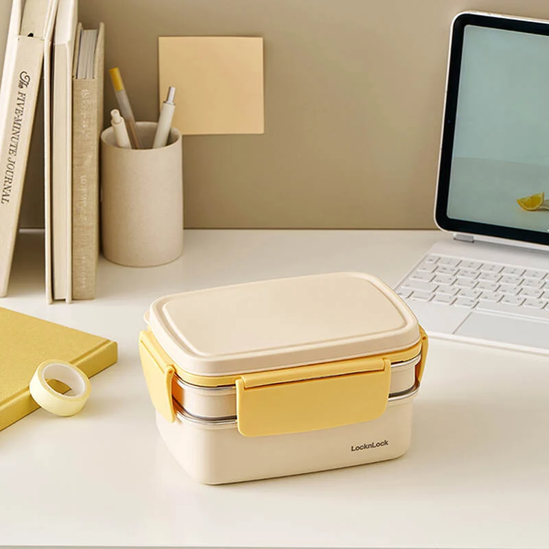Hộp cơm inox 2 tầng chia ngăn LocknLock LCB500 dung tích 1.6L, được thiết kế tiện lợi cho việc mang cơm đi học, đi làm. Sản phẩm làm từ thép không gỉ cao cấp kết hợp nhựa PP an toàn, bền bỉ, không chứa BPA. Hộp có 2 tầng riêng biệt, dễ dàng chia ngăn thực phẩm, giữ hương vị và hạn chế lẫn mùi. Thiết kế nắp khóa gài chắc chắn giúp chống tràn đổ khi di chuyển, đồng thời kiểu dáng hiện đại, gọn gàng phù hợp sử dụng hàng ngày.