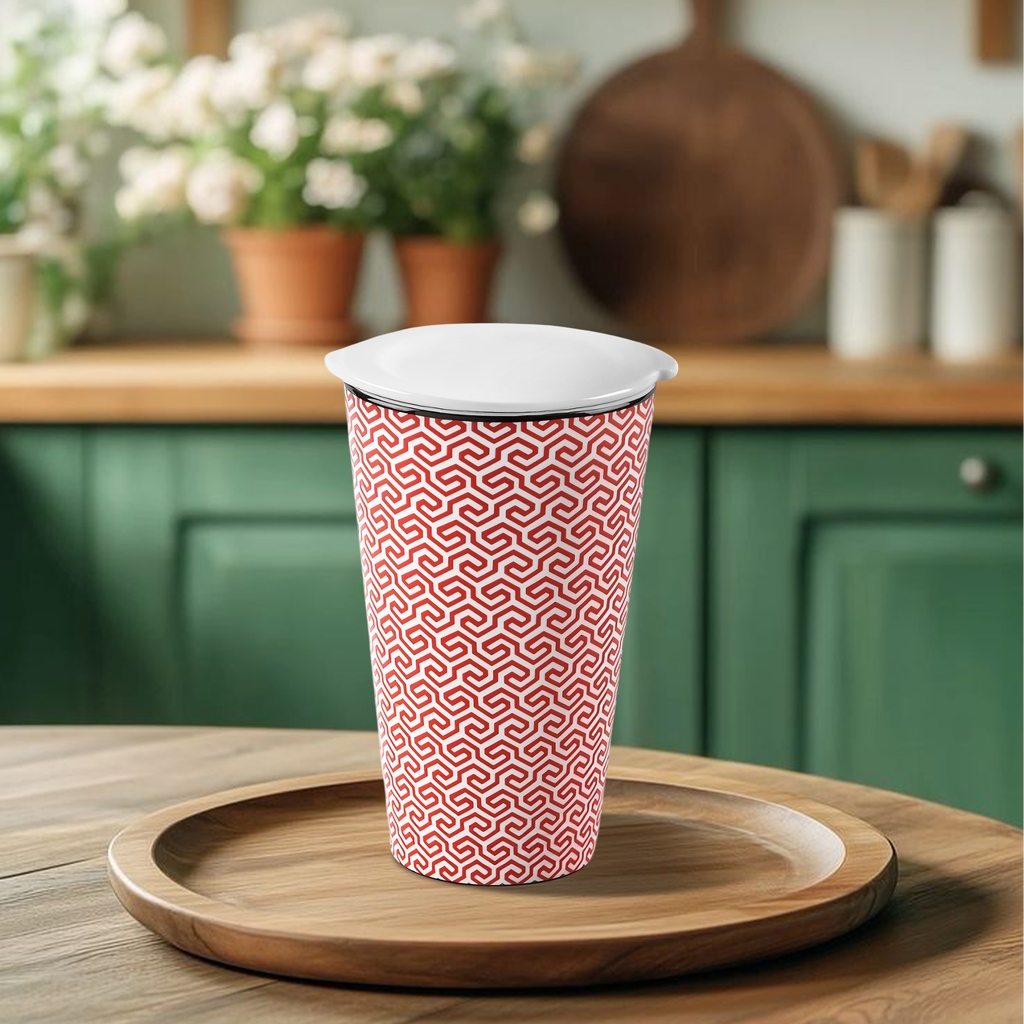 ☕ Ly Sứ Dưỡng Sinh 0.48L Kèm Nắp Red Karakusa – Tinh Tế, An Toàn, Giữ Nhiệt Tốt ☕