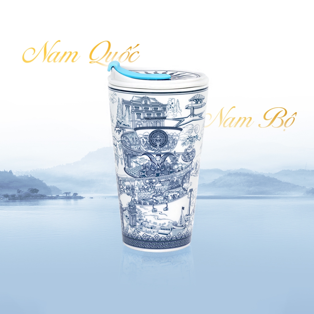 Ly sứ dưỡng sinh 0.48 L (K1) với thiết kế trang nhã, đi kèm nắp và ống hút tiện lợi, mang đến trải nghiệm thưởng thức nước uống vừa hiện đại vừa an toàn cho sức khỏe. Họa tiết Nam Quốc – Nam Bộ được thể hiện tinh tế, đậm đà bản sắc văn hóa Việt, tạo nên sự khác biệt cho sản phẩm. Đây không chỉ là một chiếc ly dùng hằng ngày mà còn là vật phẩm mang giá trị thẩm mỹ và ý nghĩa tinh thần sâu sắc.