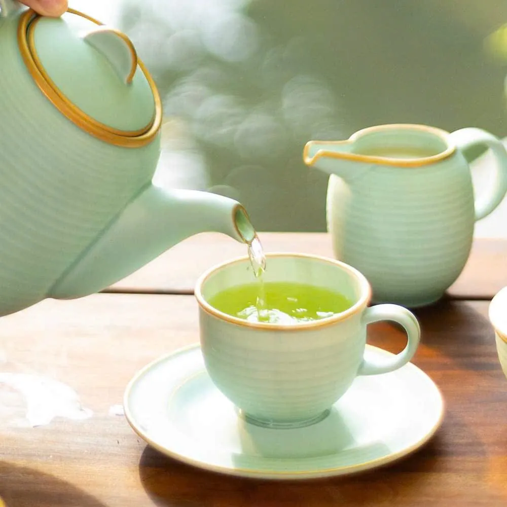 Cordon men ngọc sương mờ thể hiện vẻ đẹp mỹ thuật tinh tế, tạo phong cách đồng nhất và sang trọng cho không gian bàn ăn. Sản phẩm nổi bật với màu men Celadon khó chinh phục nhất trong lịch sử gốm sứ. Nay các nghệ nhân Minh Long ứng dụng thêm kỹ thuật chế tác phủ lớp sương mờ, tạo cảm giác mềm mượt như nhung. Sự hài hòa trong kiểu dáng và màu sắc, cùng những nét vẽ vàng 24k sắc sảo giúp tôn lên hương vị và nâng tầm trải nghiệm của thực khách.
